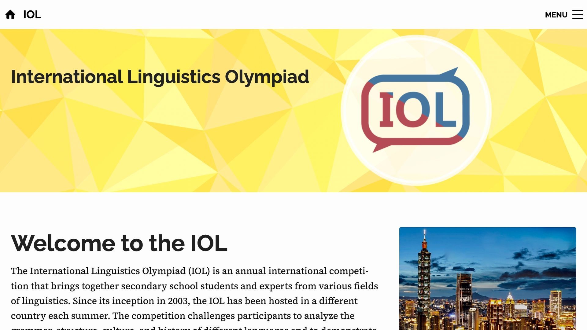 The International Linguistics Olympiad (IOL) is a competition for secondary-school students. Each participating country sends 1-2 teams of four contestants, typically chosen from the winners of their national Linguistics Olympiad. No prior linguistic knowledge is required, as every problem is self-contained. The best preparation is to practice with past problems.