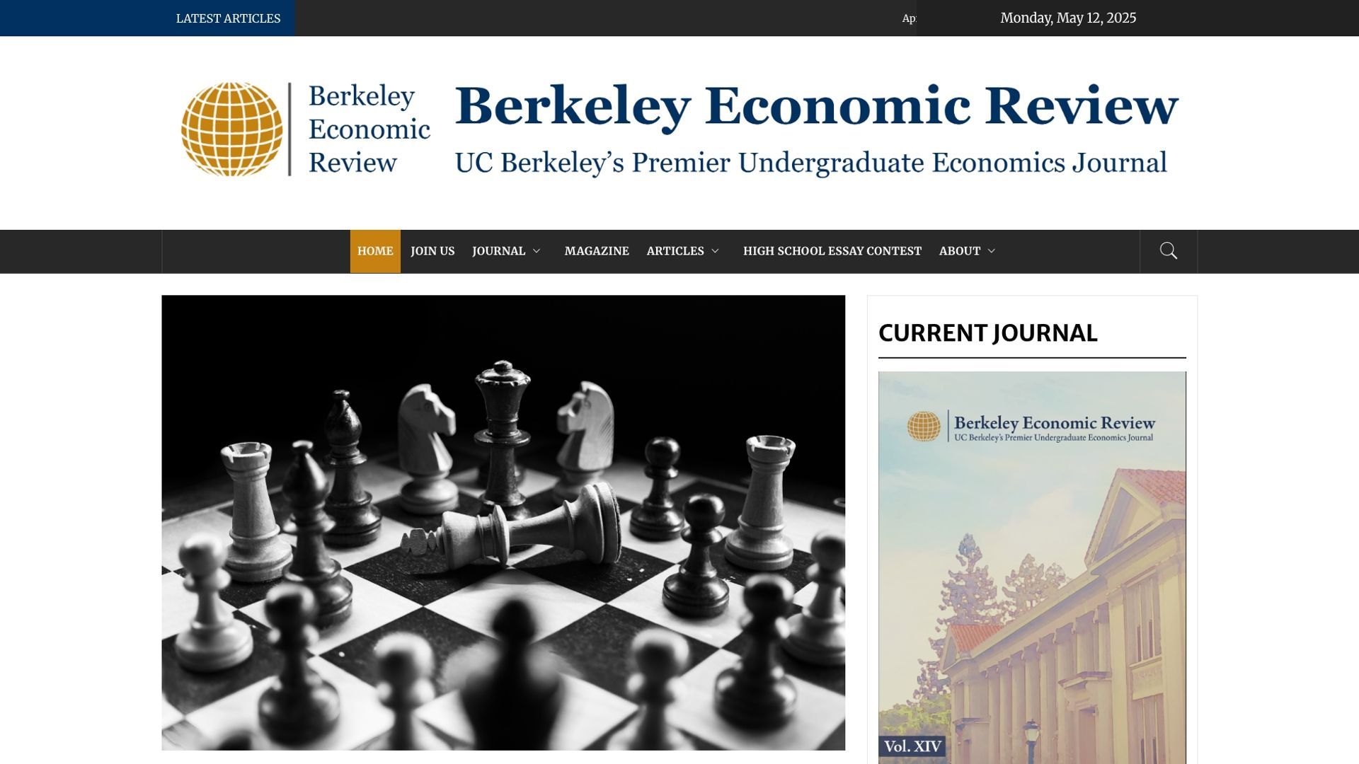 The Berkeley Economic Review High School Essay Contest invites high school students to explore economic topics through essay writing. For Spring 2025, the prompt focuses on consumerism, fast fashion, drop-shipping, and ESG metrics in the context of global sustainability. Essays must be supported by evidence from credible sources and include a works cited page. Winning essays will be published in the Berkeley Economic Review magazine, Equilibrium, and featured on the organization's website and social media.