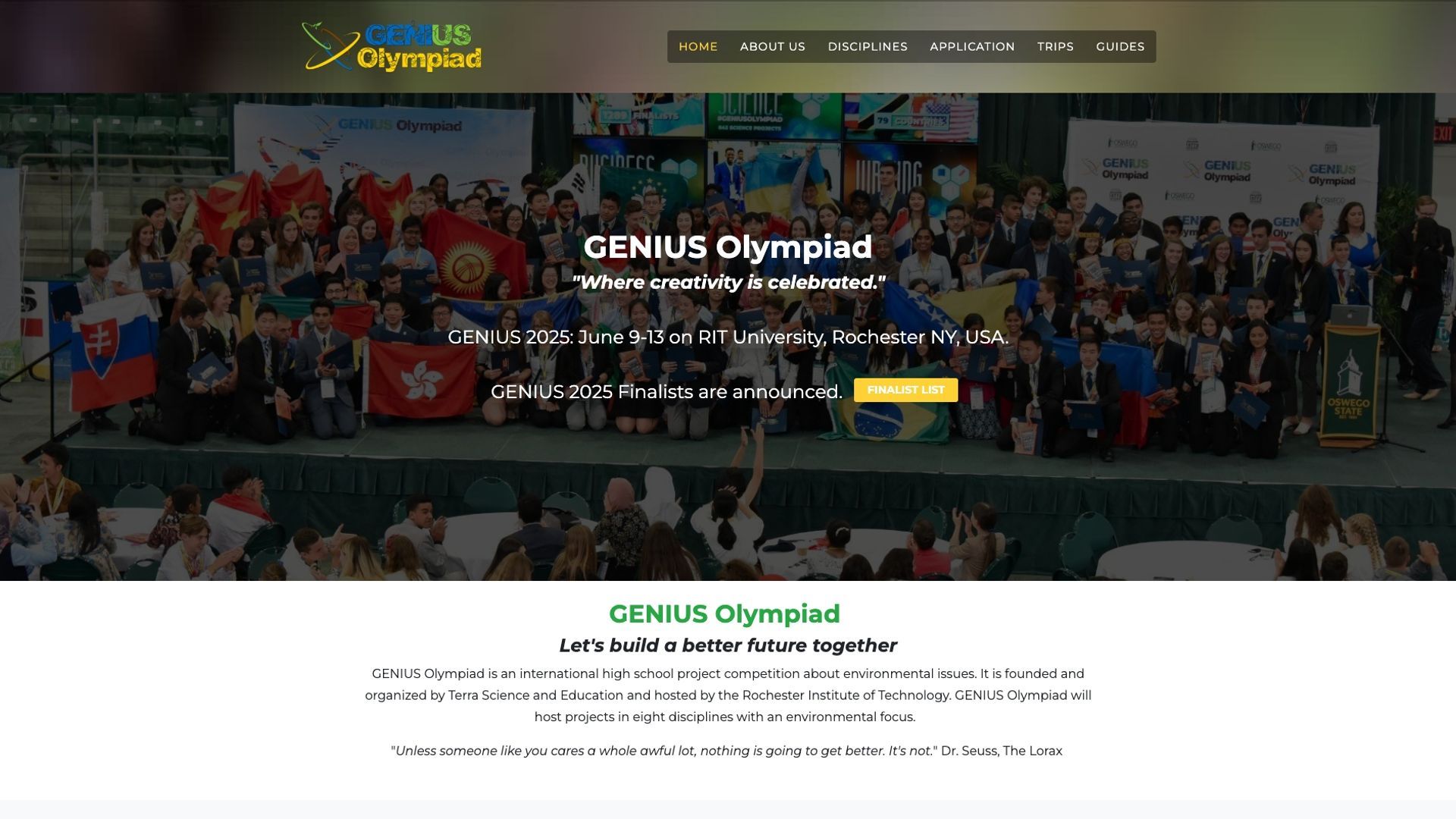 GENIUS Speech raises awareness and inspires action on environmental issues through persuasive speeches and talks. Students are tasked with recording a three-minute speech on the current topic and uploading it to YouTube as part of the initial application. Finalist students will deliver a three-minute speech at the fair and respond to questions from a panel of judges.