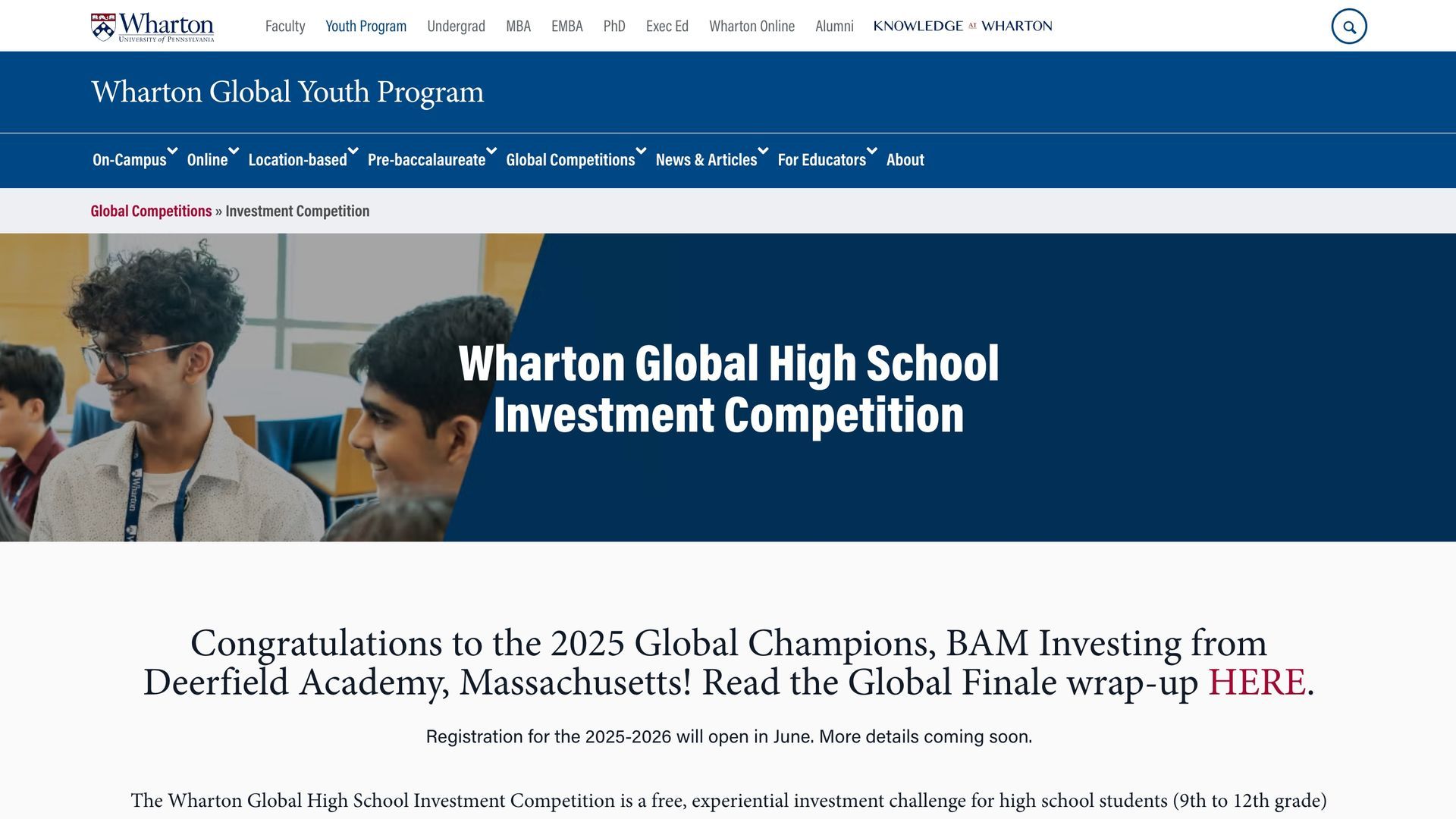 Перейти на сайт Wharton Global High School Investment Competition